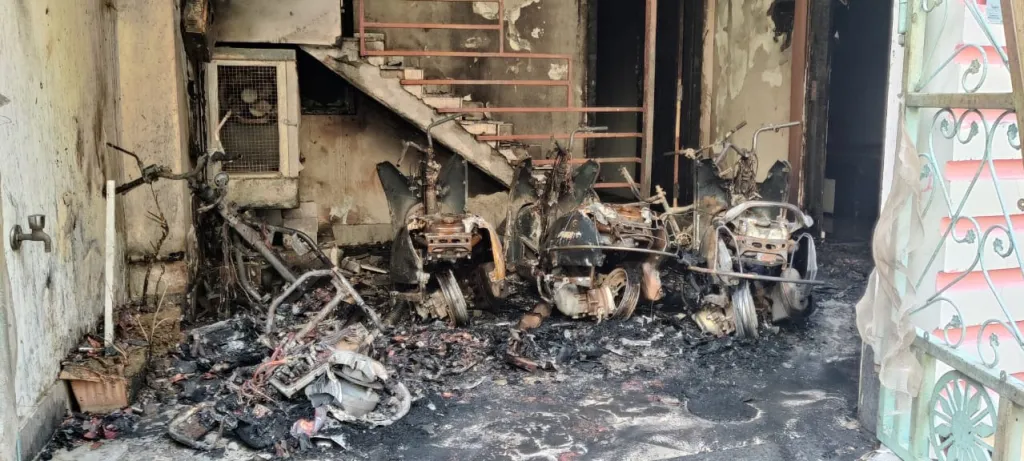 कृष्णा नगर में 38 साल के डॉ. फैजान का दोमंजिला मकान है। वे अपने परिवार के साथ रहते है। उन्होंने बताया कि रात के करीब डेढ़ बजे के आसपास ओला स्कूटर को चार्जिंग में लगाकर परिवार सोने चले गया। घर के आंगन में 3 और दोपहिया गाड़ियां खड़ी थी। तभी अचानक सुबह साढ़े 5 के आसपास ओला स्कूटर की बैटरी में ब्लास्ट हो गया। इससे आग पूरी गाड़ी में फैल गई।