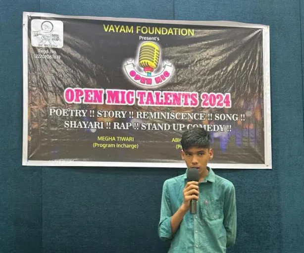 रायपुर वयं फाउंडेशन द्वारा वृन्दावन हॉल में बच्चों में छिपी प्रतिभा को सामने लाने के लिए ओपन माइक टैलेंट्स 2024 का आयोजन किया गया | इसमें बच्चों के साथ-साथ बड़ों ने भी कविता, कहानी, मिमिक्री, संस्मरण आदि की भावभीनी प्रस्तुतियाँ दीं | किसी ने अपने विचार सबके साथ साझा किए, तो किसी ने शायरी सुनाई, तो किसी ने हास्य का सहारा लिया। सूरज प्रकाश ने जहाँ मिमिक्री करते हुए लोगों को हँसाया, वहीं शिवाचार्य अनमोल मणि, सुमन शर्मा बाजपेयी, किशनचंद केवलानी, रागिनी गुप्ता गुंजन, डिकेश्वर साहू व अन्य ने कविता पाठ किया | प्रीति दास मिश्रा, आशा केवलानी, प्रीति रानी तिवारी से अपने गीतों, भजनों, विचारों से समां बाँध दिया | दीप्ति नागेश ने स्वरचित कविता का पाठ किया, सरोज जी ने अपने विचार प्रस्तुत किए और सज्जन, संजीव, लोकेश, अभिषेक, करण, आर्यन, नवीन, भूपेंद्र, दिकेश्वर व अन्य ने कहानियाँ प्रस्तुत कीं।