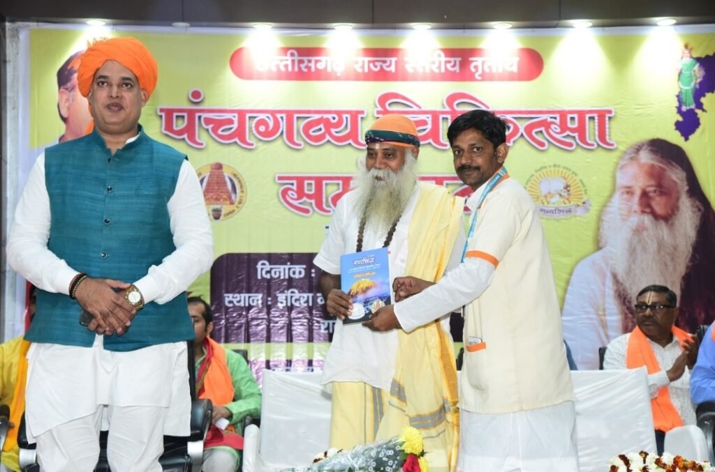 रायपुर। छत्तीसगढ़ पंचगव्य डॉक्टर असोसिएशन द्वारा छत्तीसगढ़ राज्य स्तरीय तृतीय पंचगव्य चिकित्सा सम्मेलन इंदिरा गांधी कृषि विश्वविद्यालय सभागृह रायपुर में आयोजित किया गया। कार्यक्रम में मुख्य वक्ता गव्यसिद्ध आचार्य एवं गुरूकुलपति पंचगव्य विद्यापीठम् कांचीपुरम् तमिलनाडु डॉ. निरंजन वर्मा द्वारा पंचगव्य चिकित्सा एवं गौ विज्ञान पर विशेष व्याख्यान व मार्गदर्शन दिया। उन्होंने कहा कि गाय की सुरक्षा, सरंचना व संवर्धन के लिए गाय से आर्थिक स्वावलंबी व्यवस्था पर कार्य करने की आवश्यकता है। गाय का महत्व चिकित्सा, कृषि, शिक्षा सहित अन्य सभी क्षेत्रों में है। आज पूरा विश्व विभिन्न प्रकार की बीमारियों से ग्रस्त है और सभी को चिकित्सा की आवश्यकता है। देश के बजट का एक बड़ा हिस्सा स्वास्थ्य सुविधाओं में खर्च हो रहा है। गाय को स्वास्थ्य से जोड़ दिया जाए तो देश के नागरिक स्वस्थ्य रहेंगे और गाय का भी संरक्षण व संवर्धन होगा। उन्होंने बताया कि पंचगव्य चिकित्सा हमारी वैदिक शास्त्रों में वर्णित एक पुरानी एवं पारंपरिक चिकित्सा पद्धति है। देश में आज 10 हजार से ज्यादा गव्यसिद्ध पंचगव्य चिकित्सा पद्धति से कैंसर, सिकल सेल जैसे जटिल से जटिल बीमारियों का ईलाज कर रहे है और इसके अद्भूत एवं सुखद परिणाम भी मिल रहा है। उन्होंने पंचगव्य चिकित्सा से स्वस्थ हुए विभिन्न मरीजों के उदाहरण प्रस्तुत किए।