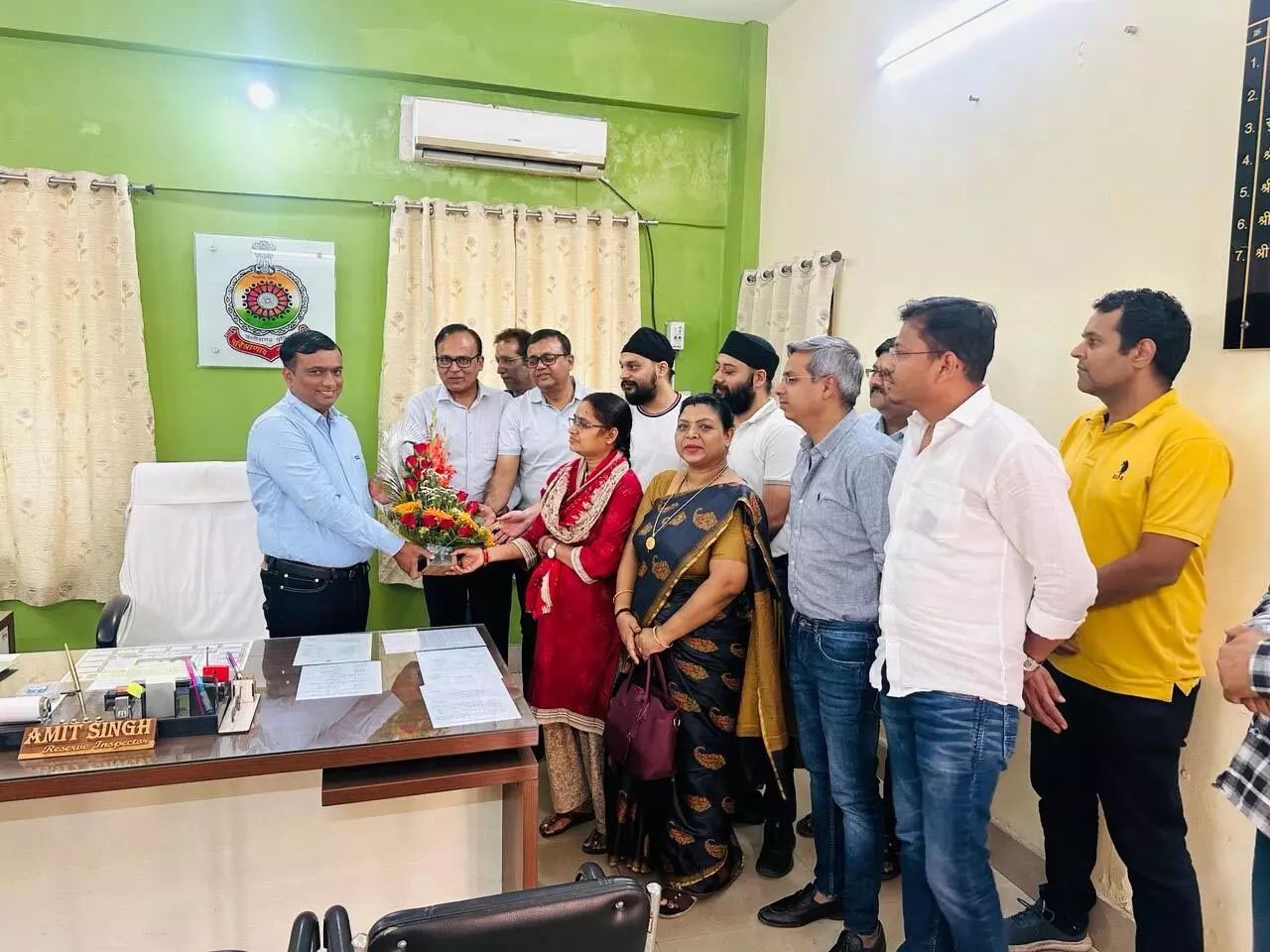 रायगढ़ बीते 28-29 फरवरी की रात थाना घरघोड़ा क्षेत्र अंतर्गत गोमती फ्यूल्स में लूटपाट की नियत से घुसे अज्ञात युवक की पहचान कर 24 घंटे के भीतर आरोपी युवक को गिरफ्तार करने में घरघोड़ा पुलिस को सफलता मिली है। पुलिस की त्वरित कार्यवाही से क्षेत्रवासियों में पुलिस के प्रति विश्वास और बढ़ा है। आज सुबह पेट्रोल पंप एसोसिएशन रायगढ़ के सदस्यगण धीरज अग्रवाल, पवन गुप्ता, विनोद भट्टीमार, सुनील गुप्ता, कमल प्रीत तनुजा, गगनदीप, अनिल गर्ग, किसान उरांव, मनीष देवांगन, बंटी अलंग और घटना में घायल हुये गोमती फ्यूल्स के संचालक खीरू राय की पत्नी गोमती खीरू राय ने एसपी दिव्यांग कुमार पटेल को पुष्प गुच्छ भेंट कर रायगढ़ पुलिस का आभार व्यक्त किया गया। एसपी दिव्यांग कुमार पटेल बताये कि ऐसे दुःसाहसिक करने वालों को भविष्य में भी सलाखों के पीछे भेजा जायेगा, क्षेत्र की सुरक्षा और शांति व्यवस्था बनी रहे इसके लिए रायगढ़ पुलिस प्रतिबद्ध है।