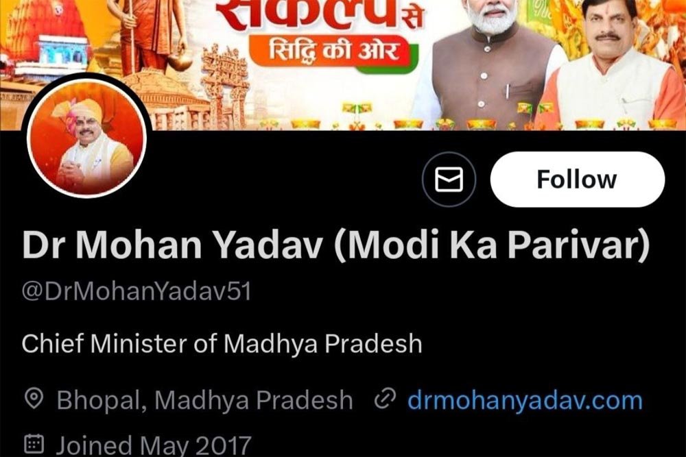 मध्य प्रदेश के मुख्यमंत्री डॉ. मोहन यादव ने अपने सोशल मीडिया अकांटस एक्स प्रोफाइल में नाम के आगे लिखा मोदी का परिवार लिखा है। मुख्यमंत्री डॉ. यादव ने अपने सोशल मीडिया पर भाजपा की 'मोदी का परिवार' मुहिम के तहत अपने सोशल मीडिया हैंडल पर बायो में मोदी का परिवार लिखा है। इस मुहिम के तहत राष्ट्रीय अध्यक्ष जेपी नड्डा जी और गृहमंत्री अमित शाह, नितिन गडकरी सहित कई बड़े नेताओं ने भी अपने नाम के आगे मोदी का परिवार लिखा है। गौरतलब है कि प्रधानमंत्री नरेंद्र मोदी ने पूरे देश को अपना परिवार बताया था जिसके बाद भारतीय जनता पार्टी ने सोशल मीडिया पर मोदी का परिवार नाम की मुहिम शुरू की, इसी मुहिम के तहत मुख्यमंत्री डॉ. मोहन यादव ने भी अपने सोशल मीडिया पर नाम के साथ मोदी का परिवार लिखा।