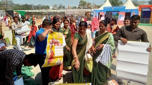 रायपुर राजधानी रायपुर के साइंस कॉलेज मैदान में आज प्रदेश सरकार की फ़्लैगशिप योजना महतारी वन्दन योजना के राशि अन्तरण सम्मेलन के अवसर पर प्रदेश सरकार की जनकल्याणकारी योजनाओं एवं कार्यक्रमो पर आधारित जनसंपर्क संचालनालय द्वारा प्रकाशित सामग्री का निःशुल्क वितरण किया जा रहा है । इनमें मोदी की गारन्टी पॉकेट बुक, विष्णु देव के त्वरित निर्णयों से हो रहा है सुशासन का सूर्योदय, मातृत्व जतन महतरियो का वन्दन, रामो विग्रहवान धर्मह, सचित्र केलेण्डर सुशासन के दो माह पुस्तक सहित मासिक पत्रिका छत्तीसगढ़ जनमन के नए अंक का वितरण किया जा रहा है।