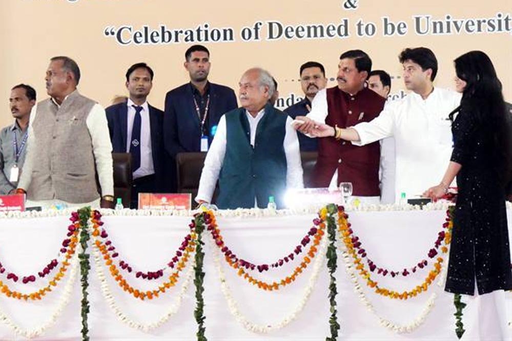 मुख्यमंत्री डॉ. मोहन यादव आज ग्वालियर में माधव इंस्टीट्यूट ऑफ टेक्नोलॉजी और साइंस ग्वालियर को डीम्ड यूनिवर्सिटी का दर्जा मिलने पर आयोजित हुए भव्य कार्यक्रम को संबोधित कर रहे थे। इस अवसर पर उन्होंने माधव इंस्टीट्यूट ऑफ टेक्नोलॉजी और साइंस ग्वालियर में श्रीमंत माधवराव सिंधिया नॉलेज सेंटर का उदघाटन किया।