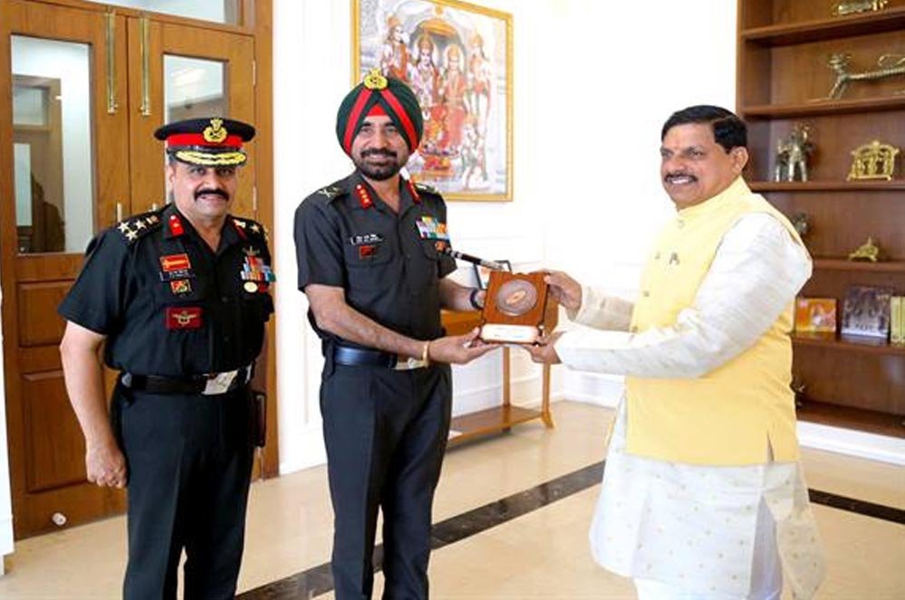 मुख्यमंत्री डॉ. यादव से सेना के जनरल आफिसर कमांडिंग प्रीतपाल सिंह ने की सौजन्य भेंट