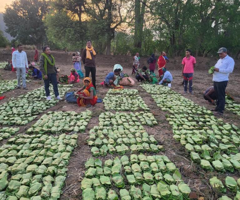 कवर्धा। दूरस्थ अंचल में निवासरत वनवासियों एवं आदिवासियों की अतिरिक्त आय का प्रमुख स्त्रोत तेंदूपत्ता संग्रहण है। राज्य शासन ने इस साल तेंदूपत्ता संग्रहण दर को 4000 रू. प्रति मानक बोरा से बढ़ा कर 5500 रू. प्रति मानक बोरा कर दिया है। परिणाम स्वरूप वनवासी अपने परिवार सहित भीषण गर्मी में अधिक-से-अधिक तेंदूपत्ता संग्रहण करने में जुट गए है। असमय वर्षा भी उन्हें इस कार्य को सम्पन्न करने से रोक नहीं सकी। वर्षा बन्द होते ही ग्रामीण तेंदूपत्ता संग्रहण में लग जाते है।