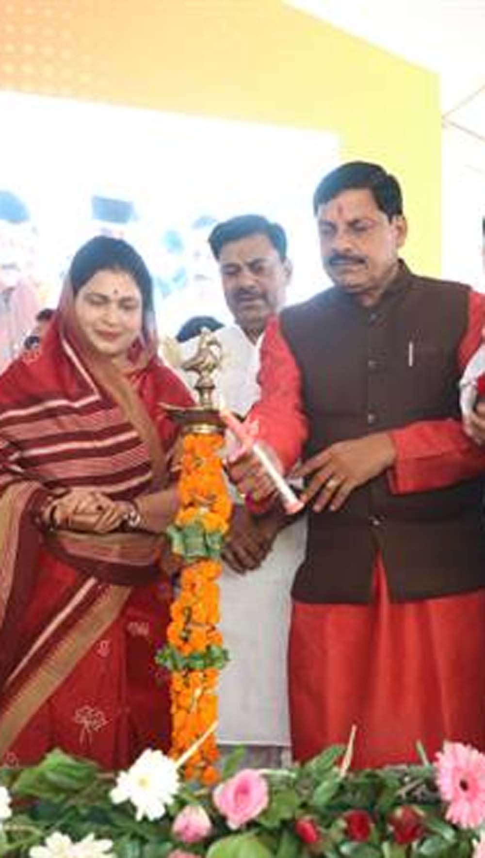 शासकीय सुभाष उत्कृष्ट उच्चतर माध्यमिक विद्यालय में आयोजित राज्य स्तरीय कार्यक्रम मुख्यमंत्री डॉ. यादव ने दीप प्रज्वलित कर शुभारंभ किया। मुख्यमंत्री डॉ. यादव ने विद्यार्थियों द्वारा बनाए गए चित्रों की प्रदर्शनी का अवलोकन भी किया। मुख्यमंत्री डॉ. यादव ने शाला में नवप्रवेशी विद्यार्थियों को दुलार कर, तिलक लगाकर व पुस्तकें भेंट कर उनका स्वागत किया। मुख्यमंत्री डॉ. यादव ने सुपर-100 योजना के अंतर्गत वर्ष 2024 में जेईई एडवासं में आईआईटी में प्रवेश लेने वाले शासकीय विद्यालयों के विद्यार्थियों ग्राम सालीचौका जिला नरसिंहपुर के श्री पवनराय, ग्राम रक्सहाकलॉ जिला रीवा के श्री शीतल सिंह, सतना जिले ग्राम अतरार के श्री साहिल पाल, भोपाल के श्री रविराज विश्वकर्मा का सम्मान भी किया।