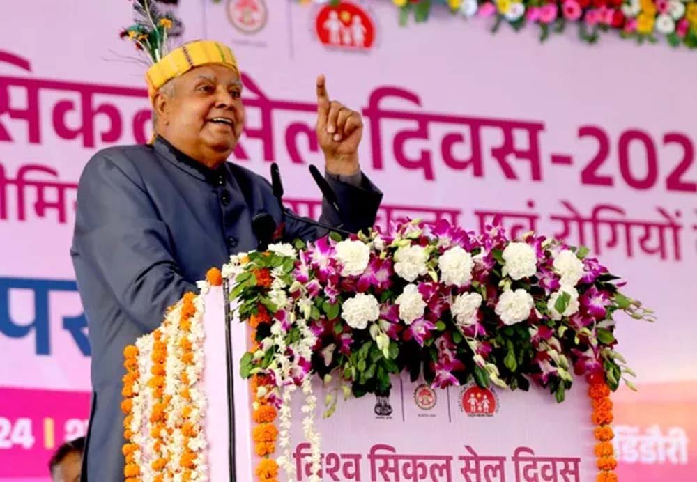 उप राष्ट्रपति श्री धनखड़ ने कहा कि प्रधानमंत्री श्री मोदी ने इस आशय की घोषणा जुलाई 2023 में शहडोल जिले से की और राष्ट्रीय सिकल सेल एनीमिया उन्मूलन मिशन-2047 का शुभारंभ किया। सिकल सेल उन्मूलन का यज्ञ आरंभ हो चुका है। हम सब को इसमें योगदान देना है। सिकल सेल एनीमिया जैसी अनुवांशिक बीमारी के उन्मूलन के लिए आयुष्मान भारत योजना में आवश्यक सुधार करना शासन की दूर दृष्टि को दर्शाता है। इस बीमारी के उन्मूलन के लिए समग्र दृष्टिकोण अपनाना आवश्यक है। प्रदेश सरकार इस दिशा में देश में अग्रणी है। डिंडोरी एवं आसपास के जिलों में जैव विविधता और औषधीय वनस्पति का खजाना उपलब्ध है। उप राष्ट्रपति श्री धनखड़ ने कहा कि भारतीय संविधान में जनजातियों के लिए विशेष प्रावधान है। जनजातीय क्षेत्रों में प्रचुर मात्रा में खनिज तथा अन्य राष्ट्रीय खनिज धरोहर उपलब्ध हैं। प्रधानमंत्री श्री मोदी द्वारा जनजातीय क्षेत्रों के विकास के लिए विशेष पहल की गई है।