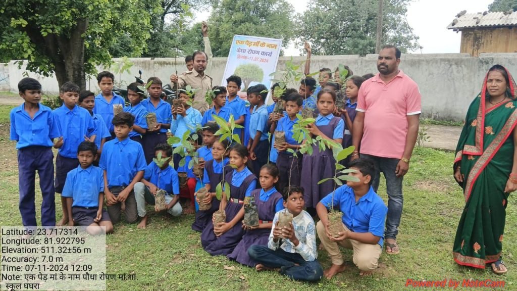 मनेंद्रगढ़. “एक पेड़ माँ के नाम” के तहत मनेंद्रगढ़ ज़िले में रिकॉर्ड 90 हज़ार पौधों का रोपण हुआ. इसके लिए सभी स्कूलों और सरकारी संस्थानो को चुना गया. पौधारोपण के लिए हर एक गाँव के स्कूल, आँगनवाड़ी,पंचायत भवन,कर्मचारी क्वार्टर्स कैंपस से लेकर बड़े प्राइवेट कैंपस को भी चुना गया. सिर्फ़ वही सरकारी संस्थान बच गये जिनमे सुरक्षा के लिए बाउंड्रीवॉल नहीं है.लगभग 80% सरकारी बिल्डिंग में वहाँ के स्कूली बच्चों और कर्मचारियों के द्वारा अपने माँ के नाम पौधे लगाया गया.ज़िले के सभी स्कूलों में छोटे बच्चो के हाथों में माननीय प्रधानमंत्री,मुख्यमंत्री और वनमंत्रीजी का फ्लेक्स देखा जा सकता था.सभी ने पौधे लगाकर उसका सुरक्षा का वादा किया.