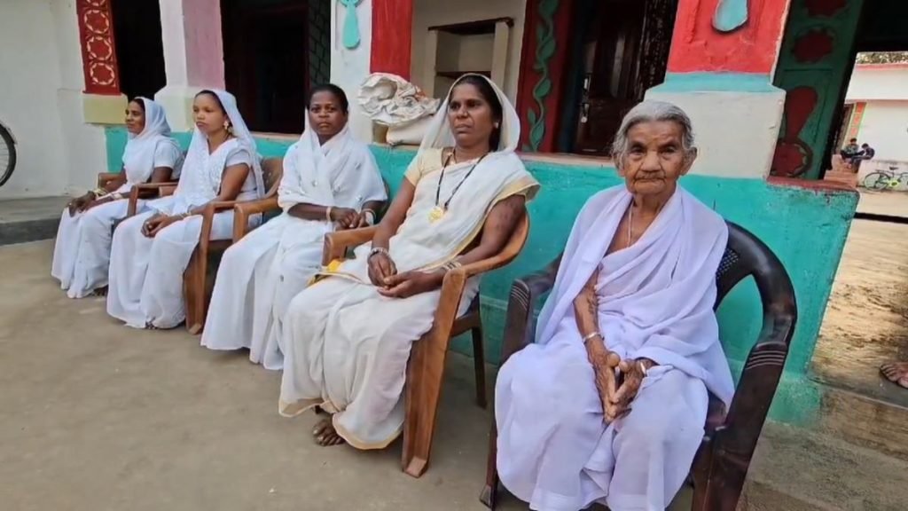 छत्तीसगढ़ के गरियाबंद तहसील मुख्यालय से 24 किमी दूर कोसमी गांव में रहने वाले आदिवासी पुजारी परिवार के घर की महिलाएं सुहागन तो हैं, लेकिन न उनके मांग पर सिंदूर, न ही माथे पर कोई बिंदी होती है. कलाई पर कांच की चूड़ियों की जगह कांसे की चूड़ी पहनती हैं और लिबाज भी विधवा की तरह सफेद है.
