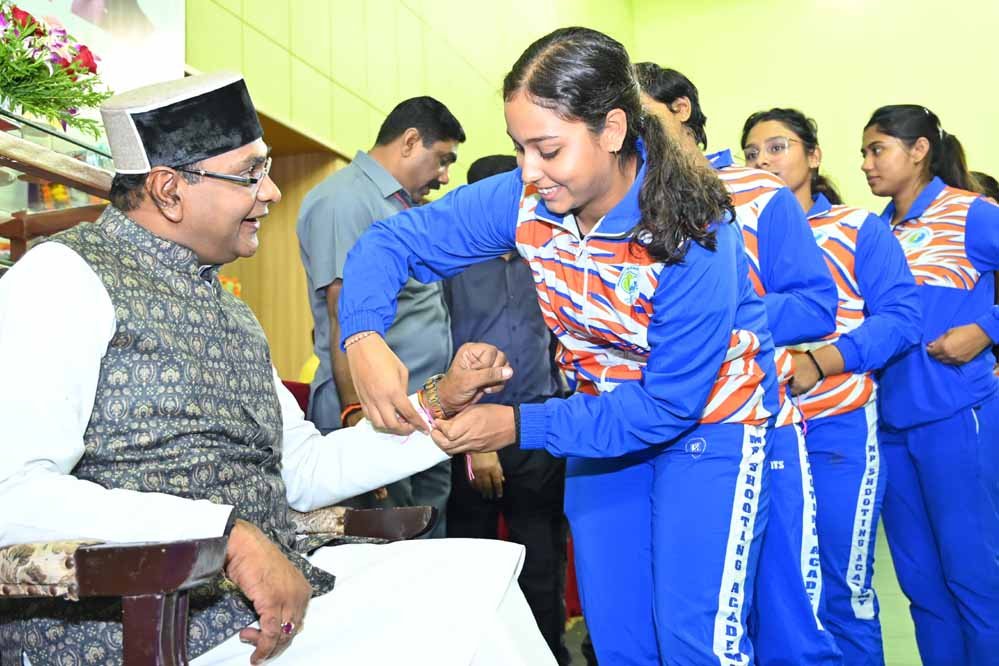 राष्ट्रीय खेल दिवस पर मंत्री सारंग को खिलाडियों ने बांधी राखी