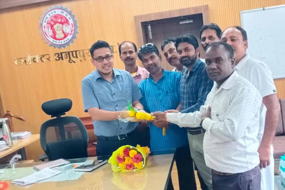 अधिमान पत्रकार नेतृत्व समिति के पदाधिकारी नवागत कलेक्टर हर्षल पंचोली से सौजन्य भेंट कर जिले के विभिन्न मुद्दों पर चर्चा किया जिसमें अनूपपुर जिले,के,राजेंद्रग्राम,कोतमा,बदरा, राजनगर एवं बिजुरी के पत्रकारों ने अपनी बात रखी।जिसमें मुख्य रूप से अधिमान्य पत्रकार नेतृत्व समिति के राष्ट्रीय अध्यक्ष डल्लू कुमार सोनी,प्रदेश उपाध्यक्ष दिनेश सिंह शहडोल संभागीय अध्यक्ष जावेद अहमद ,जिला अध्यक्ष प्रकाश सोनी पूर्व जिला अध्यक्ष प्रवीण चंद्रवंशी राजेंद्रग्राम एवं पत्रकार तीरथ प्रसाद मिश्रा एवं दशरथ प्रसाद श्रीवास अन्य शामिल रहे।