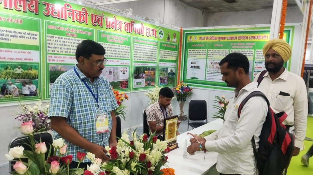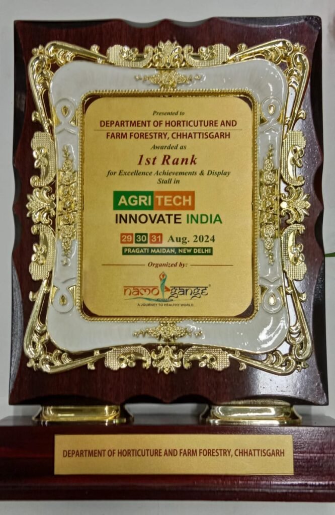 रायपुर। देश की राजधानी नई दिल्ली के भारत मण्डपम में आयोजित राष्ट्र स्टार की प्रदर्शनी एग्रीटेक इनोवेट इंडिया में छत्तीसगढ़ उद्यानिकी एवं प्रक्षेत्र वानिकी को उत्कृष्ट प्रदर्शनी के लिए प्रथम पुरस्कार प्राप्त हुआ है। कृषि विकास एवं किसान कल्याण मंत्री राम विचार नेताम ने स्टॉल प्रदर्शनी में प्रथम स्थान प्राप्त करने के लिए बधाई और शुभकामनाएं दी है। उद्यानिकी विभाग के संचालक जगदीशन एस. के मार्गदर्शन में उद्यानिकी एवं वानिकी कृषकों की सफलता की कहानी पर आधारित प्रदर्शनी लगाई गई है।