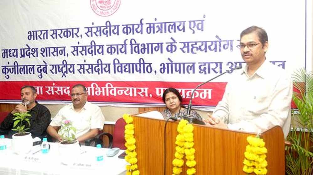 भोपाल के पं. कुंजीलाल दुबे राष्ट्रीय संसदीय विद्यापीठ में युवा संसद प्रभारियों का प्रशिक्षण वीडियो कॉन्फ्रेंसिंग के माध्यम से आयोजित किया गया। इसके उद्घाटन सत्र में अपर मुख्य सचिव संसदीय कार्य विभाग केसी गुप्ता शामिल हुए।