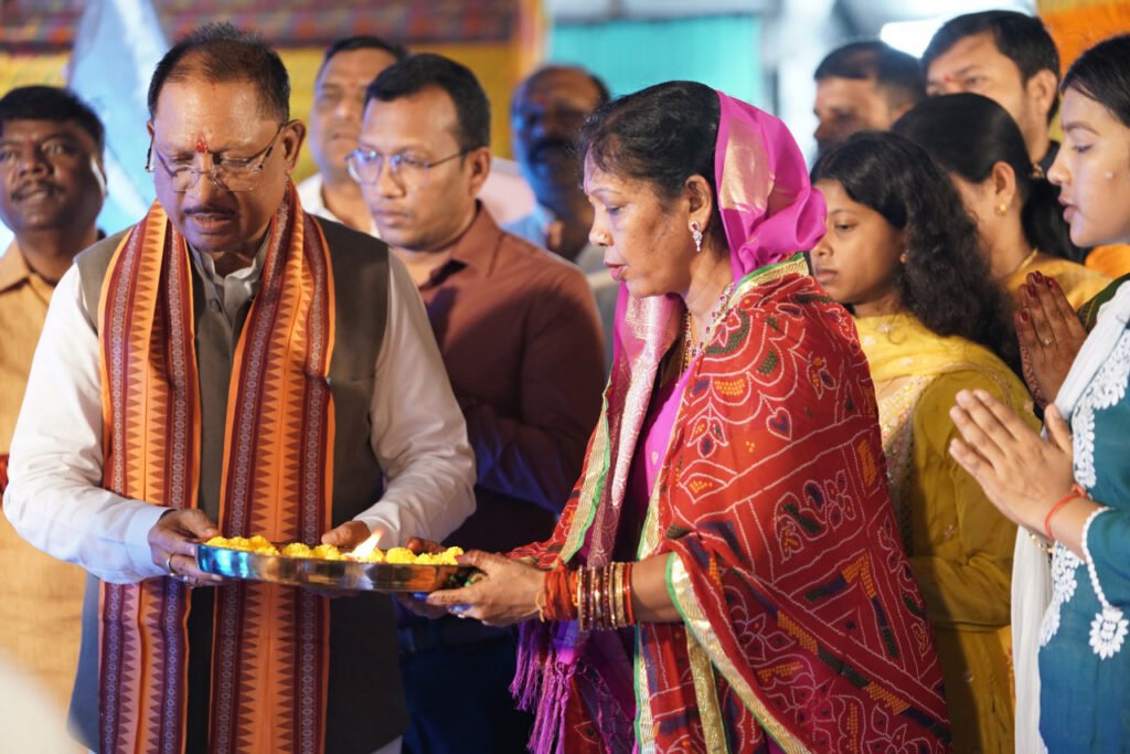 उप मुख्यमंत्री अरुण साव, वन मंत्री केदार कश्यप, राजस्व मंत्री टंकराम वर्मा, महिला एवं बाल विकास मंत्री लक्ष्मी राजवाड़े भी मुख्यमंत्री के साथ पूजा में हैं शामिल