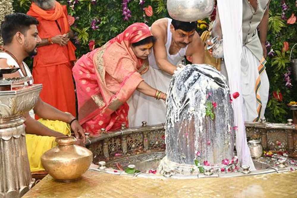 मुख्यमंत्री डॉ. मोहन यादव ने सोमवार को सोमवती अमावस्या पर भगवान महाकालेश्वर मंदिर में दर्शन किए और सपत्नीक पूजन-अर्चन किया। पूजा-अर्चना पं. राजेश गुरु ने सम्पन्न कराया। पूजन के बाद मुख्यमंत्री डॉ. यादव को कलेक्टर एवं महाकालेश्वर मंदिर प्रबंध समिति के अध्यक्ष नीरज कुमार सिंह ने शॉल और श्रीफल भेंट किया।