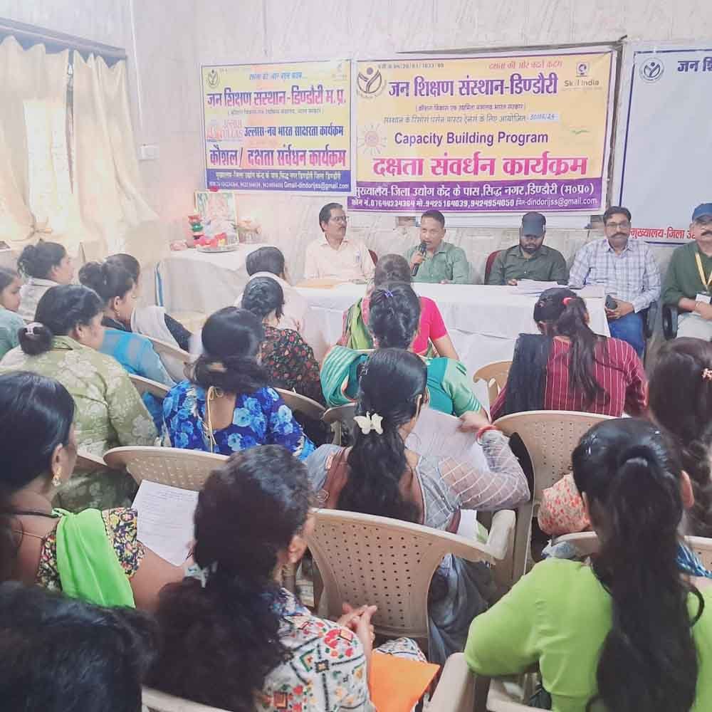 कार्यक्रम के मुख्य अतिथि ओम सिंह ठाकुर,प्रभारी महिला सेल थाना डिंडोरी तथा जिला युवा अधिकारी नेहरू युवा केन्द्र से आर पी कुशवाहा जी एवं नर्मदा वेलफ़ेयर संस्था की निदेशक श्रीमती श्वेता जैन के सानिध्य में कार्यशाला का शुभारंभ माँ सरस्वती की वंदना तथा दीप प्रज्वलन से प्रारंभ हुआ । संस्थान के निदेशक दिवाकर द्विवेदी ने अतिथियों का स्वागत करते हुए आयोजन के उद्देश्य पर प्रकाश डालते हुए संस्थान द्वारा संचालित प्रशिक्षण तथा गतिविधियों का प्रतिवेदन प्रस्तुत किया। शिक्षा विभाग द्वारा संचालित उल्लास-नव भारत साक्षर कार्यक्रम के विषय मे जन शिक्षा केन्द्र डिंडोरी से पधारे संतोष मिश्रा तथा केंद्र की टीम द्वारा पीपीटी के माध्यम से महत्वपूर्ण जानकारी सभी ट्रेनर को प्रदान की गई। मिश्रा जी ने नव भारत साक्षरता "जन जन साक्षर" के उद्देश्य,लक्ष्य पर प्रकाश डालते हुए कहा की संस्थान के ट्रेनर, स्त्रोत व्यक्तिओ तथा सभी विभागों, स्वैक्षीक संगठनों को अक्षर साथी के रूप में पंजीकृत करके असाक्षरों को सर्वे के माध्यम से जोड़कर साक्षरता मूल्यांकन में भागीदारी करना है।