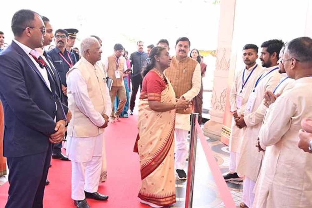 राष्ट्रपति श्रीमती मुर्मु ने शिल्पकारों से संवाद में कहा कि आप श्रीमहाकाल लोक में मूर्ति का निर्माण कर रहे हैं, यह पूरे देश और विशेषकर ओडिशा राज्य के लिये गर्व का विषय है। उन्होंने शिल्पकारों द्वारा किए जा रहे कार्य के बारे में विस्तार से जानकारी ली। राष्ट्रपति ने शिल्पकारों से कहा कि पढ़ाई सभी लोग करते हैं, लेकिन कला सबके पास नहीं होती है। आपके द्वारा किए जा रहे कार्य बहुत सराहनीय है। इस दौरान राष्ट्रपति श्रीमती मुर्मु ने शिल्पकारों को शॉल और श्रीफल भेंट कर सम्मानित किया। शिल्पकारों द्वारा राष्ट्रपति को पाषाण का शिवलिंग भेंट किया।