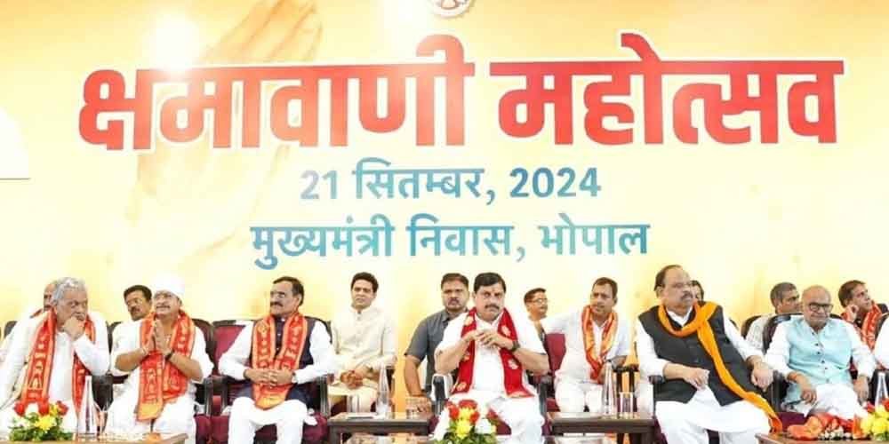 भाजपा के प्रदेश अध्यक्ष एवं सांसद वी डी शर्मा ने कहा कि क्षमा की भावना रखना बड़ी बात है। क्षमा वही कर सकता है जो क्षमतावान और शक्तिमान है। क्षमावाणी हमारी संस्कृति का बड़ा और पवित्रता का पर्व है। सम्पूर्ण जैन समाज देश और समाज के लिए महत्वपूर्ण भूमिका में रहा है। उन्होंने कहा कि मुख्यमंत्री सभी समाजों और वर्गो को साथ लेकर चल रहे हैं। प्रधानमंत्री मोदी की भावना के अनुरूप सबका साथ-सबका विकास कर रहे हैं।