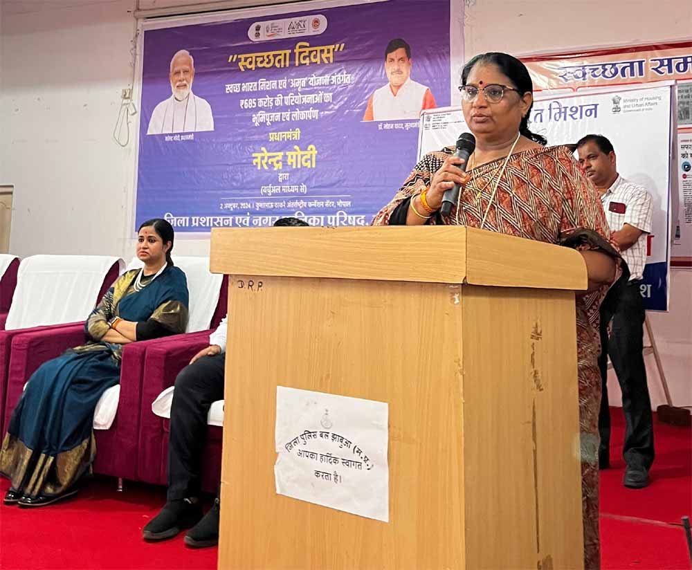 महिला एवं बाल विकास मंत्री सुश्री निर्मला भूरिया ने कहा है कि “स्वच्छता ही सेवा अभियान पखवाड़ा’’ के समापन अवसर पर स्वच्छता के लिए प्रधानमंत्री श्री नरेन्द्र मोदी एवं मुख्यमंत्री डॉ. मोहन यादव के नेतृत्व में देश एवं प्रदेश में स्वच्छता क्रांति का रूप ले चुकी है। मनुष्य के स्वभाव में स्वच्छता को बनाये रखने एवं जागरूकता की भावना आत्मसात होना आवश्यक है और इसी वैचारिक परिवर्तन को निरन्तर बनाये रखने का कार्य आने वाली पीढ़ी का है। व्यक्तिगत स्तर पर परिवर्तन ही समाज और देश में परिवर्तन लाता है। स्वच्छता ही सेवा के लक्ष्य को प्राप्त करता है। सुश्री भूरिया झाबुआ में ‘स्वच्छता ही सेवा अभियान पखवाड़े’ के समापन समारोह को संबोधित कर रही थीं।
