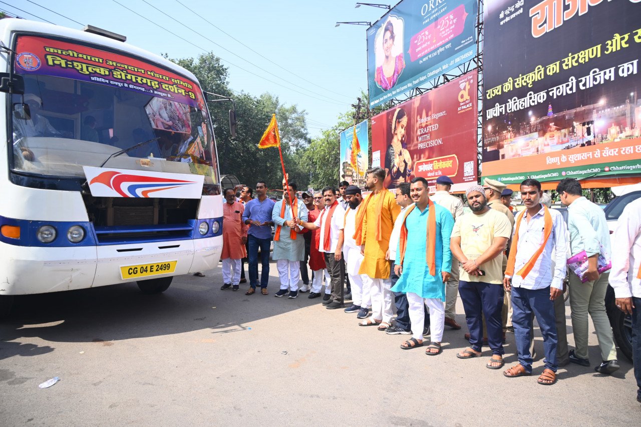 रायपुर। उपमुख्यमंत्री विजय शर्मा ने आज डोंगरगढ़ मां बम्लेश्वरी के दर्शन के लिए जा रहे श्रद्धालुओं के बस को काली माता मंदिर, रायपुर से झंडी दिखाकर रवाना किया। उप मुख्यमंत्री ने नवरात्रि के शुभ मौके पर इस पावन यात्रा के लिए श्रद्धालुओं को शुभकामनाएं दी। कालीमाता अन्नदान भंडारा समिति द्वारा श्रद्धालुओं को पिछले कई वर्षों से लगातार नवरात्रि के पावन मौके पर मां बम्लेश्वरी धाम की निःशुल्क यात्रा कराई जाती है। इस वर्ष भी बसों के माध्यम से श्रद्धालुओं को मां बम्लेश्वरी दर्शन के लिए भेजा जा रहा है। इस मौके पर कालीमाता अन्नदान भंडारा समिति के पदाधिकारी मौजूद रहे।