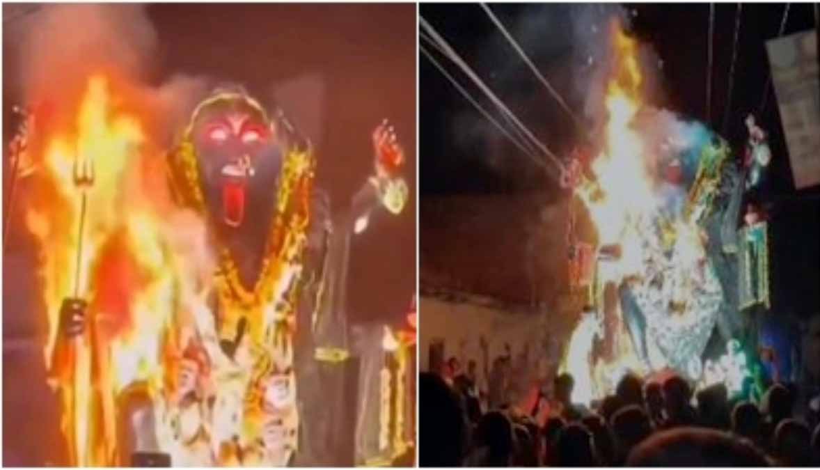 जानकारी के मुताबिक घटना अमरपाटन कस्बे के आजाद चौक की है। जिस दौरान प्रतिमा में आग लगी उस समय सैकड़ों की तादाद में लोग मौजूद थे। घटना के बाद मौके पर अफरा-तफरी की स्थिति बन गई थी। बताया जा रहा है कि पास में जल रहे अनार की चिंगारी से अचानक आग भड़क उठी। कड़ी मशक्क्त के बाद आग पर काबू पाया गया। काली माता की प्रतिमा के ऊपर बिजली के तार भी थे, अगर आग पर काबू नहीं पाया जाता तो बड़ा हादसा भी हो सकता था।