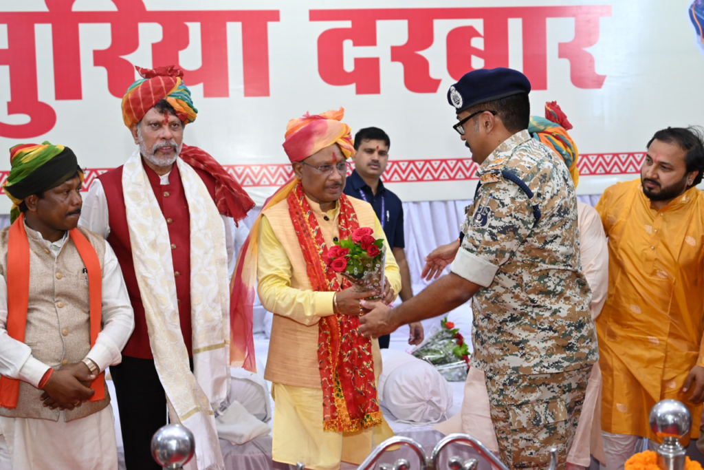 मुख्यमंत्री विष्णु देव साय जगदलपुर के सीरासार भवन में आयोजित मुरिया दरबार में मांझी-चालकी, मेम्बर-मेम्बरीन और बस्तर दशहरा समिति के पदाधिकारियों से रूबरू हो रहे हैं।