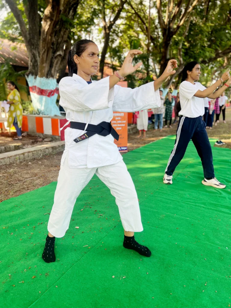 छात्राओं, महिला प्राध्यापकों-कर्मचारियों, उनके परिवार की महिलाओं एवं बालिकाओं ने सीखा कैसे करें शारीरिक स्वरक्षा