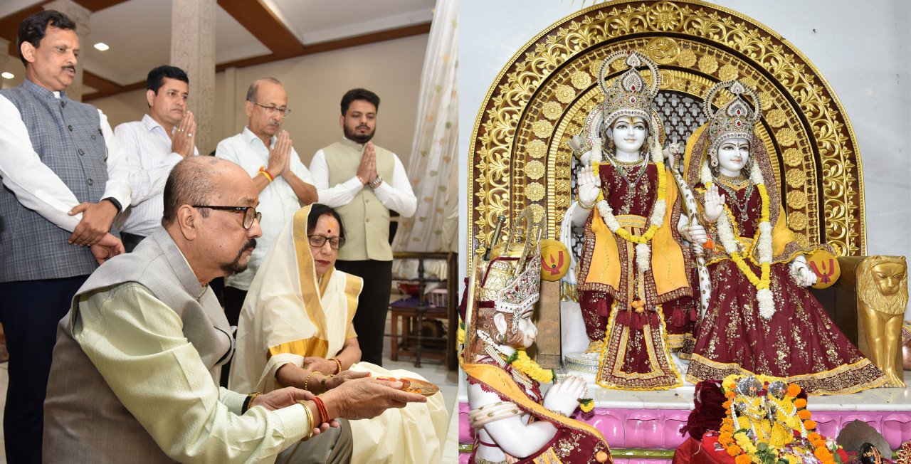 रायपुर, राज्यपाल रमेन डेका ने रायपुर के विशाल नगर स्थित राम मंदिर पहुंचकर भगवान राम के दर्शन कर विधिवत पूजा अर्चना की और छत्तीसगढ़ के समस्त देश-प्रदेश वासियों की सुख समृद्धि एवं खुशहाली की कामना कीं। इस अवसर पर प्रथम महिला रानी डेका काकोटी भी उपस्थित थी।