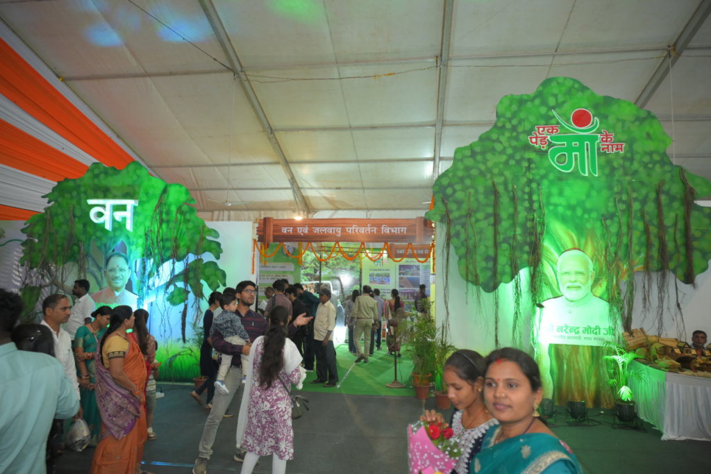 वन्यप्राणी प्रभाग के द्वारा छत्तीसगढ़ राज्य में बाघों की संख्या, वन्यजीव संरक्षण के लिए वन विभाग द्वारा किए जा रहे प्रयासों के संबंध में वीडियो, मानव-वन्यप्राणी सह अस्तित्व के संबंध में प्रतिरूप तथा एक आकर्षक सेल्फी पॉइंट बनाया गया है। संजीवनी स्टाल में छत्तीसगढ़ लघु वनोपज संघ के द्वारा बनाये जा रहे विभिन्न प्रकार के हर्बल एवं खाद्य उत्पादों को प्रदर्शित एवं विक्रय किया जा रहा है। वन विभाग के द्वारा चलाए जा रहे इकोटूरिज्म एवं रोजगार मूलक कार्याे एवं देवगुड़ी को प्रदर्शित करने हेतु एक प्रतिरूप का निर्माण किया गया है। छत्तीसगढ़ आदिवासी स्थानीय स्वास्थ्य परंपरा एवं औषधि पादप बोर्ड के द्वारा वनों में पाए जाने के विभिन्न प्रकार के औषधीय पौधों एवं उनके गुण एवं उनकी कृषिकरण संबंधित जानकारी प्रदर्शित की गई है। इसी तरह संयुक्त वन प्रबंधन के द्वारा वनवासियों को स्वरोजगार हेतु प्रेरित करने के लिए बनाये गए स्टाल में विभिन्न वन प्रबंधन समितियों के द्वारा बनाये गए उत्पाद जैसे सीताफल आइसक्रीम, रबड़ी, जामुन जूस, विष्णुभोग चावल इत्यादि को प्रदर्शन एवं विक्रय हेतु उपलब्ध कराया गया है।