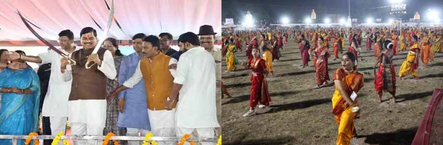 स्टेडियम में सोलहहाथ का लुगड़ा पहनकर आई युवतियां जय भवानी जय शिवाजी का नारा लगा रही थीं। इसके बाद देशभक्ति के गीतों के बीच तलवारबाजी की गई। आयोजन में एक लड़की को तलवार से चोट भी लग गई। इस दौरान मुख्यमंत्री मोहन यादव ने भी तलवार घुमाई। आयोजन में उन्होंने लाडली बहना योजना की किस्त की राशि सिंगल क्लिक से जारी की। अन्य योजनाओं की राशि भी हितग्राहियों को जमा की। आयोजन में केंद्रीय मंत्री सावित्री ठाकुर, पूर्व अभिनेत्री जया प्रदा भी मौजूद रहीं। मुख्यमंत्री मोहन यादव ने एक अन्य आयोजन में दिव्यागों को ट्राईसिकल भी दी।