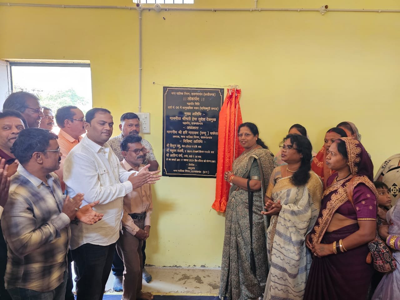 राजनांदगांव। नगर निगम द्वारा विभिन्न समाजो के लिये सामुदायिक भवन का निर्माण किया गया, इसी कडी में वार्ड नं. 6 चिखली दीनदयाल नगर में महापौर निधि अंतर्गत 05 लाख रूपये की लागत से मानिकपुरी समाज के लिये निर्मित भवन का आयोजित कार्यक्रम में महापौर हेमा सुदेश देशमुख ने पार्षद पूर्णिमा नागदेवे, युवा नेता व पार्षद प्रतिनिधि आसिफ अली, समाज के न्यायधीश मंहत अमर दास मोगरे, महंत भीखम दास, संरक्षण अंजोर दास, जिला संयोजक ज्ञान दास, शहर ईकाइ के अध्यक्ष पूरन दास मानिकपुरी सहित सामाजिक बंधुओं की उपस्थिति में फीता काटकर पट्टीका का अनावरण कर लोकार्पण किया।