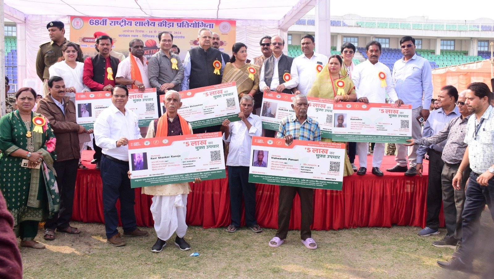 राजनांदगांव। विधानसभा अध्यक्ष डॉ. रमन सिंह ने दिग्विजय स्टेडियम में जिले के प्रथम छह हितग्राहियों को आयुष्मान भारत प्रधानमंत्री जन आरोग्य योजना अंतर्गत आयुष्मान वय वंदना कार्ड का वितरण किया। जिसमें धीरेन्द्र कुमार श्रीवास्तव, लक्ष्मीनारायण सोनी, रविशंकर कन्नौजे, दुर्जन गोंड,रामधीन सिन्हा एवं विश्वनाथ पंसारी शामिल है। इस अवसर पर डोंगरगढ़ विधायक हर्षिता बघेल, अध्यक्ष जनपद पंचायत प्रतीक्षा भंडारी, अध्यक्ष जिला सहकारी केन्द्रीय बैंक सचिन बघेल, रमेश पटेल, पूर्व विधायक रामजी भारती, कोमल सिंह राजपूत, शिव वर्मा, कलेक्टर संजय अग्रवाल, पुलिस अधीक्षक मोहित गर्ग, मुख्य चिकित्सा एवं स्वास्थ्य अधिकारी डॉ. नेतराम नवरत्न, जिला शिक्षा अधिकारी प्रवास सिंह बघेल सहित अन्य जनप्रतिनिधि, अधिकारी-कर्मचारी एवं खिलाड़ी उपस्थित थे।