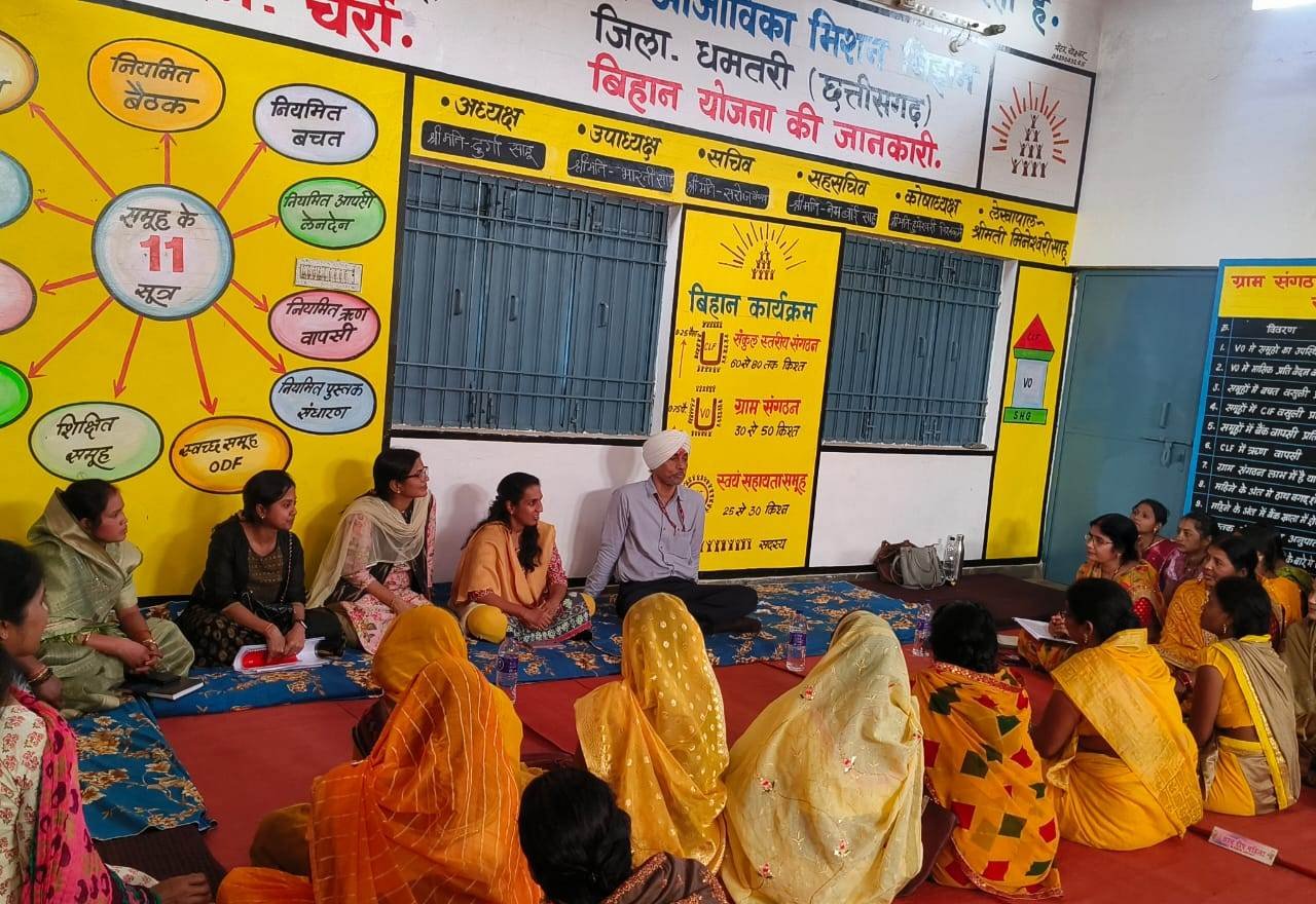 भारत सरकार के ग्रामीण विकास मंत्रालय अंतर्गत राष्ट्रीय ग्रामीण आजीविका मिशन के एडिशनल सेक्रेटरी श्री चरणजीत सिंह ने आज धमतरी जिले के नारी और चर्रा गांव का दौरा कर बिहान समूह की महिलाओं से मुलाकात की और उनके द्वारा संचालित गतिविधियों का अवलोकन किया। एडिशनल सेक्रेटरी सिंह ने बिहान के माध्यम से महिलाओं को आर्थिक रूप से मजबूत एवं स्वावलंबी बनाने हेतु किए जा रहे प्रयासों की सराहना की और कहा कि बिहान समूह से जुड़कर महिलाओं में जागरूकता और आर्थिक स्वावलंबन की भावना विकसित हुई है। एडिशनल सेक्रेटरी सिंह ने आज छत्तीसगढ़ के दो दिवसीय प्रवास पर रायपुर पहुंचे। उन्होंने ग्रामीण विकास विभाग की प्रमुख सचिव निहारिका बारिक सिंह से मुलाकात कर छत्तीसगढ़ के लिए नये प्रोजेक्ट्स की संभावनाओं पर चर्चा की।