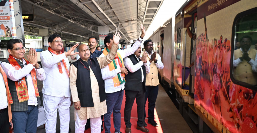 मुख्यमंत्री विष्णुदेव साय की पहल पर शुरू की गई रामलला दर्शन योजना के तहत चलाई जा रही विशेष ट्रेन आज रायपुर रेल्वे स्टेशन के प्लेटफार्म नंबर-07 से रवाना हुई। राजस्व मंत्री टंक राम वर्मा ने हरी झंडी दिखाकर ट्रेन को रवाना किया। इस विशेष ट्रेन से 850 श्रद्धालुओं का जत्था अयोध्या धाम के लिए रवाना हुआ। इस दौरान खाद्य मंत्री दयाल दास बघेल, विधायक पुरंदर मिश्रा सहित अनेक जनप्रतिनिधिगण और बड़ी संख्या में श्रद्धालु उपस्थित थे।