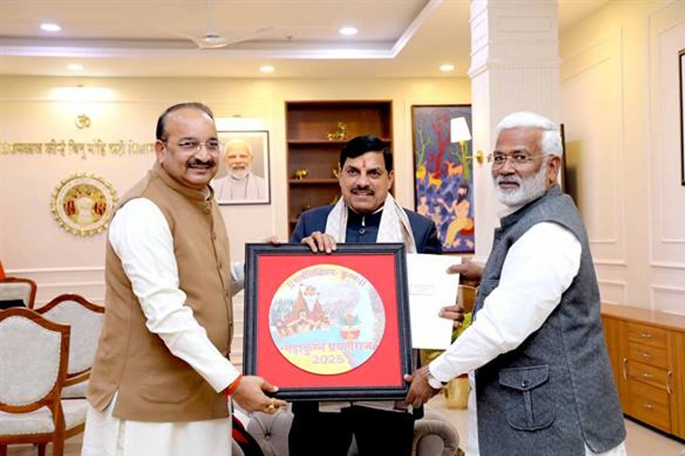 मुख्यमंत्री डॉ. मोहन यादव को 13 जनवरी से 26 फरवरी 2025 तक चलने वाले प्रयागराज महाकुंभ 2025 के लिए आमंत्रित किया गया है। मुख्यमंत्री डॉ. यादव को उत्तर प्रदेश के जल शक्ति मंत्री स्वतंत्र देव सिंह और उद्यान एवं कृषि विपणन राज्य मंत्री दिनेश प्रताप सिंह ने मुख्यमंत्री निवास स्थित समत्व भवन में सौजन्य भेंट कर गंगा जल का कलश और प्रयागराज महाकुंभ-2025 का निमंत्रण-पत्र भेंट किया। मुख्यमंत्री डॉ. यादव ने धार्मिक और सांस्कृतिक दृष्टि से महत्वपूर्ण इस वृहद आयोजन के लिए शुभकामनाएं दीं।