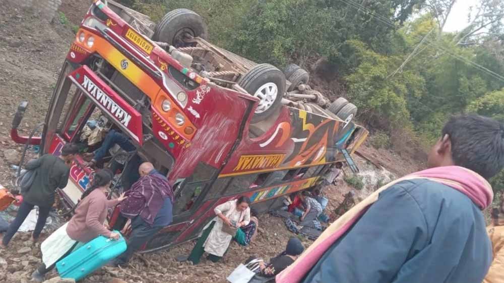 घाट से नीचे पलटी बस