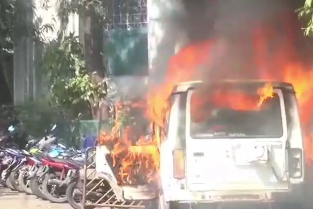 कलेक्टोरेट गेट पर धुं-धुं जल रही गाड़ी से हड़कंप मच गया। तुरंत फायर बिग्रेड को सूचना दी गई। करीब 20 मिनट में आग पर काबू पाया जा सका। कोहेफिजा पुलिस भी मौके पर पहुंची और एक युवक को पकड़ लिया। सूमो (एमपी 04 एच- 9336) में 'जिला महामंत्री महाराणा प्रताप युवा संगठन भोपाल' लिखी एक प्लेट भी रखी मिली। एएसआई जागरिया झा ने बताया, एक युवक गाड़ी के ऊपर चढ़ा था। तुरंत उसे हटाया और आग बुझाने के लिए फायर ब्रिगेड को सूचना दी गई।