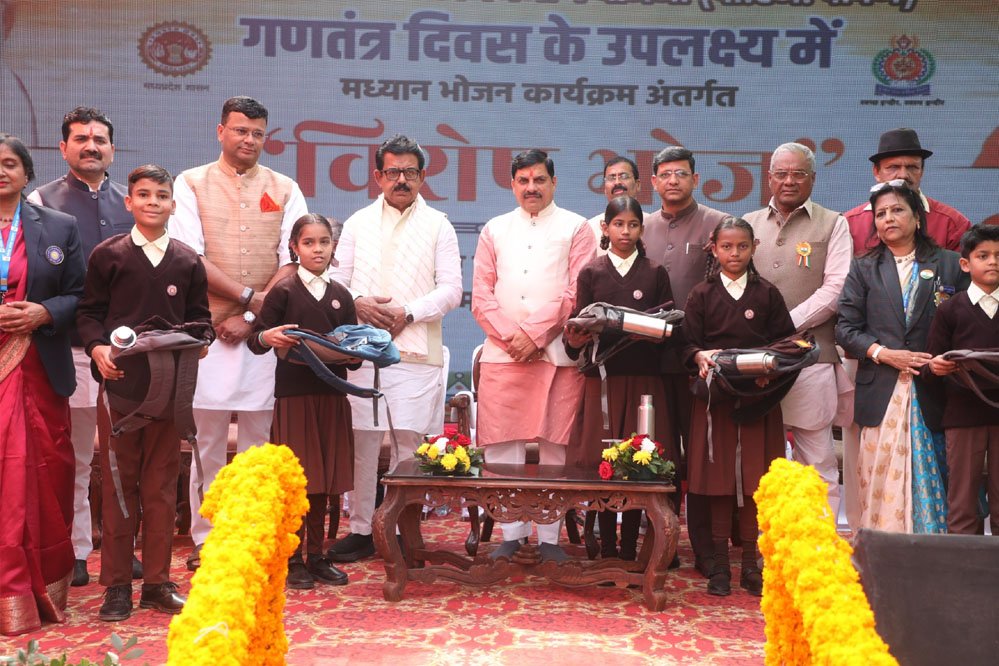मुख्यमंत्री डॉ. मोहन यादव गणतंत्र दिवस के मुख्य समारोह के बाद इंदौर के शासकीय उत्कृष्ट बाल विनय मंदिर विद्यालय में गणतंत्र दिवस के उपलक्ष में आयोजित मध्यान्ह भोजन के विशेष भोज कार्यक्रम में शामिल हुए। उन्होंने स्कूली बच्चों के साथ बैठकर भोजन किया। मुख्यमंत्री ने स्कूली बच्चों को उपहार स्वरूप स्कूली बैग, पानी बॉटल आदि वितरित कीं।