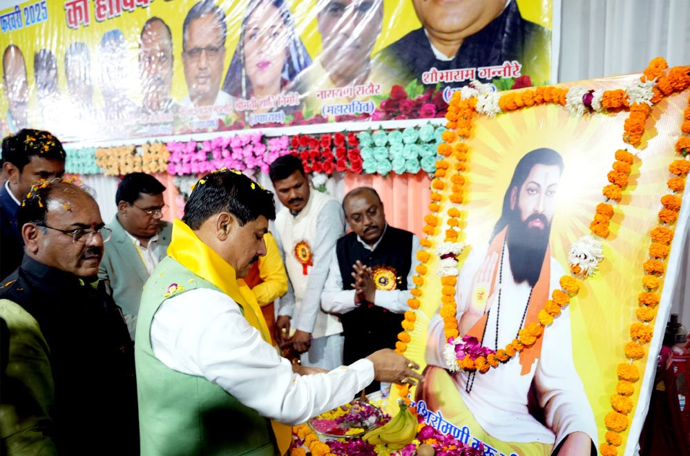 मुख्यमंत्री डॉ. मोहन यादव ने संत शिरोमणि गुरु रविदास की जयंती पर उन्हें नमन किया। मुख्यमंत्री डॉ. यादव ने कहा है कि सामाजिक सौहार्द, सद्भावना और आध्यात्मिक ज्ञान से परिपूर्ण संत रविदास जी की उत्कृष्ट रचनाओं और शिक्षाओं ने सामाजिक कुरीतियों के उन्मूलन में महत्वपूर्ण भूमिका निभाई है। संत शिरोमणि के विचारों को राज्य सरकार समाज सेवा का मंत्र मानते हुए प्रदेश के सर्वांगीण विकास के लिए कृत संकल्पित है।