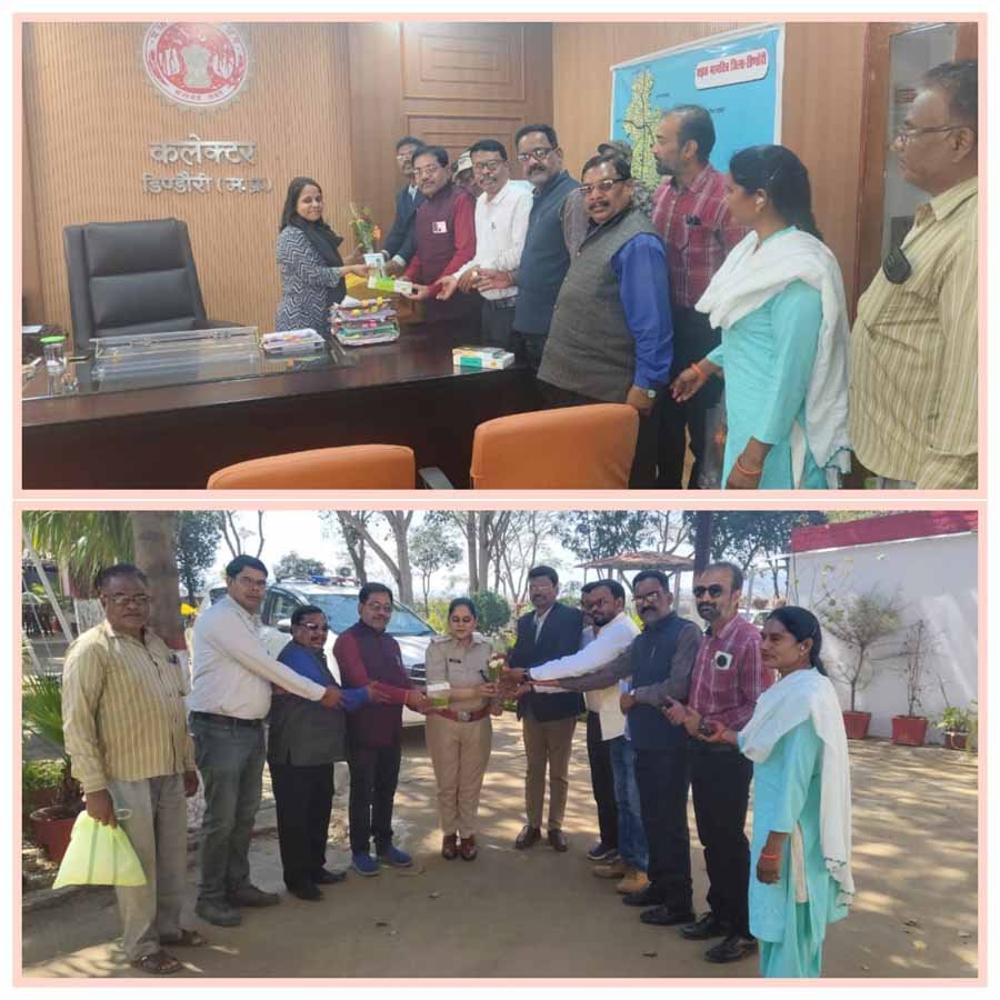 मध्यप्रदेश अधिकारी कर्मचारी संयुक्त मोर्चा जिला शाखा डिंडोरी के तत्वावधान में जिलाध्यक्ष रवि तेकाम के नेतृत्व में आज 8 मार्च 2025 दिन शनिवार को राष्ट्रीय महिला दिवस के अवसर पर माननीय कलेक्टर महोदया नेहा मारव्या एवं माननीय पुलिस अधीक्षक वाहिनी सिंह, अनुविभागीय अधिकारी राजस्व(एसडीएम) भारती मेरावी से सौहार्दपूर्ण भेंटकर राष्ट्रीय महिला दिवस की बधाई एवं शुभकामनाएं प्रेषित किया गया इस अवसर पर संयुक्त मोर्चा के पदाधिकारी एवं सभी घटक दलों के जिलाध्यक्ष तृतीय कर्मचारी संघ के जिलाध्यक्ष रेवा सिंह कुशराम मध्यप्रदेश लघु वेतन कर्मचारी संघ के जिलाध्यक्ष प्रकाश सिंह चंदेल लिपिक वर्गीय कर्मचारी संघ के जिलाध्यक्ष रत्नेश नामदेव शासकीय शिक्षक संघ के जिलाध्यक्ष मनेंद्र सिंह उददे आजाद अध्यापक संघ के जिलाध्यक्ष देवेन्द्र दिक्षित पशु चिकित्सा संघ के जिलाध्यक्ष राजेन्द्र मंडावी आपक्स संघ के जिलाध्यक्ष गणेश गवले राज्य कर्मचारी संघ के जिलाध्यक्ष राजकुमार साहू पटवारी संघ के जिलाध्यक्ष सोहन साहू वाहन चालक संघ के जिलाध्यक्ष आशिक ओलाडी टेकनेशियन संघ के जिलाध्यक्ष नारायण बनवासी आंगनबाड़ी कार्यकर्ता सहायिका संघ के जिलाध्यक्ष सुमन बघेल कार्य कर्ता सहित राष्ट्रीय महिला दिवस की बधाई प्रेषित किया गया।