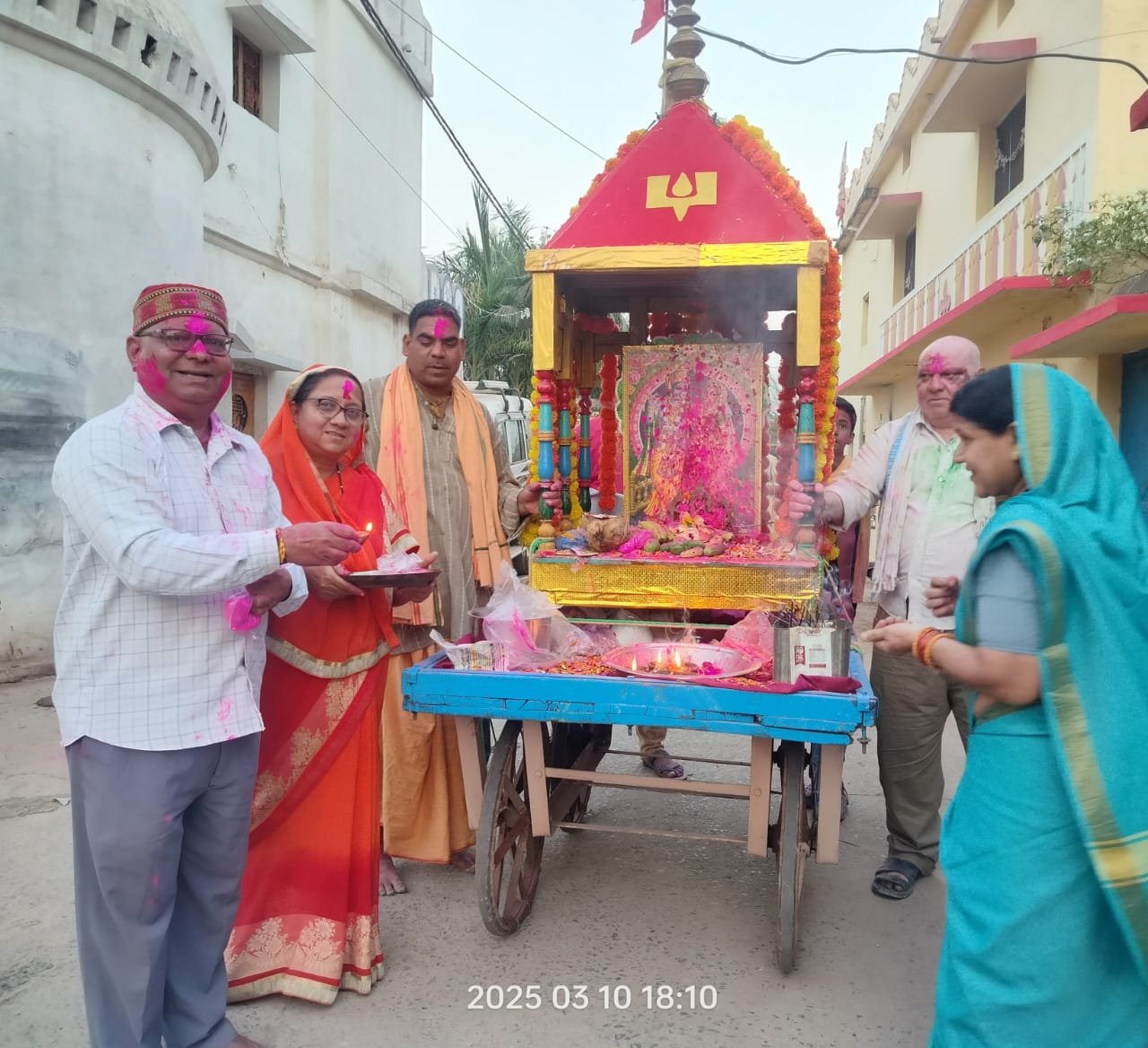 राजनांदगांव | प्रति वर्षानुसार इस वर्ष भी भगवान जगन्नाथ मंदिर बड़े जमात छुईखदान से आमलकी रंगभरी एकादशी पर्व पर सोमवार 10 मार्च 2025 को भगवान श्री कृष्ण जी की भव्य शोभायात्रा निकाली गई , जिसमें भक्त जनों द्वारा भगवान श्री राधाकृष्ण जी को गुलाल लगाकर होली उत्सव प्रारंभ हुआ। शोभायात्रा के सामने भगवान हनुमान जी के प्रतीक निशान लेकर अनिल सहित भक्त जन , मां काली जस भजन पार्टी के सदस्य फाग गीत , भजन गाते शहर भ्रमण किये । रानी मंदिर समिति के संरक्षक लाल जे. के. वैष्णव ने जानकारी दी कि शोभायात्रा में शहर के भक्तजन अपने घरों के सामने भगवान श्री राधे कृष्ण जी को सर्वप्रथम गुलाल लगाकर श्रीफल भेंटकर आरती किये । इस अवसर पर पुजारी पं विनय बावन तिवारी , पं अश्वनी त्रिपाठी , संजय लल्ला , पं शैलेन्द्र तिवारी पत्रकार , बक्शी जी, राजु यादव , राजकुमार वैष्णव , दिनेश मुकेश महोबिया , राजु यादव , अनिल चन्द्राकर , मनुवा महोबिया मेडिकल, शिवेन्द्र किशोर दास अधिवक्ता , लाल मनोज वैष्णव , आदित्य देव वैष्णव, संजय पाल, पं बावन तिवारी सहित बड़ी संख्या में भक्त जन शामिल रहे । छोटे बच्चों में विशेष कर बाल गोपाल भगवान को रंग लगाकर एक दूसरे के साथ होली खेलने का आनंद बहुत प्रशंसनीय रहा । राजपरिवार के लतारानी लाल जे के वैष्णव ने विधिवत पूजा अर्चना की।