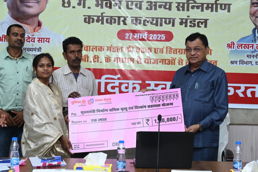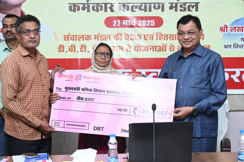 रायपुर, मुख्यमंत्री विष्णु देव साय के नेतृत्व में प्रदेश सरकार द्वारा श्रमिकों एवं उनके परिजनों की बेहतरी के लिए अनेक योजनाएं संचालित की जा रही है। इन योेजनाओं के माध्यम से श्रमिकों की सामाजिक एवं आर्थिक स्थिति के बेहतर बनाने के लिए लगातार आर्थिक मदद दी जा रही है। इसी सिलसिलें में श्रम मंत्री लखन लाल देवांगन ने आज नवा रायपुर स्थित छत्तीसगढ़ भवन एवं अन्य सनिर्माण कर्मकार मंडल कार्यालय में एक लाख 14 हजार 902 श्रमिकों के बैंक खाते में 53 करोड़ 43 लाख 74 हजार 915 रूपए डीबीटी के माध्यम से अंतरित की।