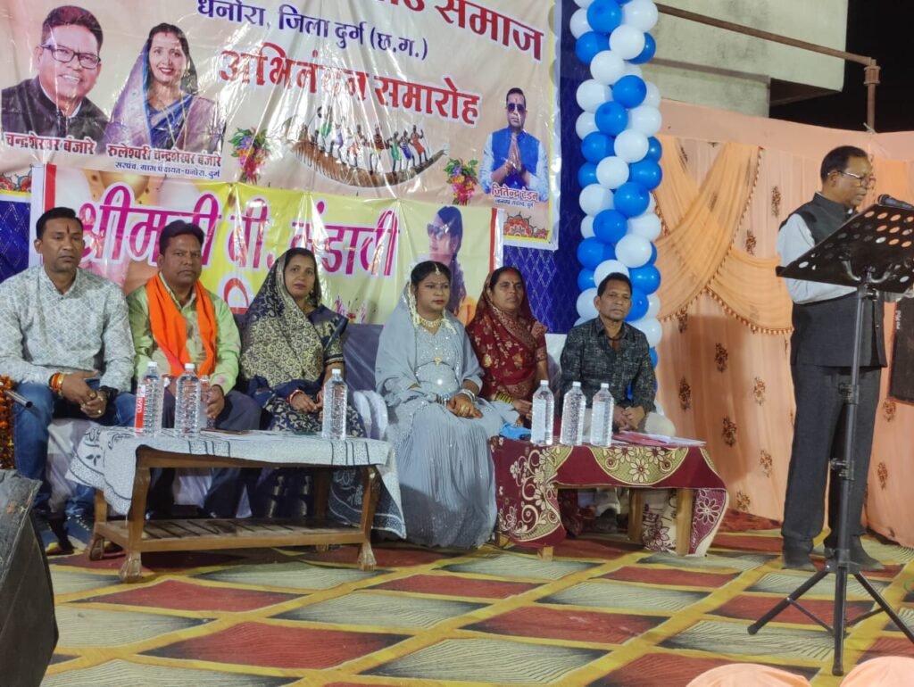 भिलाई-समीपस्थ ग्राम धनोरा स्थित “रूमी विला” में आदिवासी ध्रुव गोंड समाज द्वारा नवनिर्वाचित सरपंच एवं नवनिर्वाचित जनपद सदस्य का भव्य अभिनंदन/सम्मान समारोह श्रीमती रूलेश्वरी बंजारे, सरपंच, ग्राम पंचायत-धनोरा के मुख्य आतिथ्य एवं श्री चंद्रशेखर बंजारे तथा जितेन्द्र टंडन, जनपद सदस्य, जनपद पंचायत, दुर्ग, श्रीमती रामप्यारी ठाकुर, वार्ड पंच के विशेष आतिथ्य एवं श्री जवाहर लाल ठाकुर, आदिवासी ध्रुव समाज, धनोरा के अध्यक्ष की अध्यक्षता में सभी समाज प्रमुखों की गरिमामय उपस्थिति में सम्पन्न हुई।