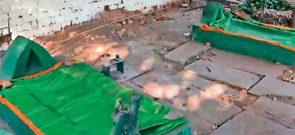 तब मंदिर से पहले एक शासकीय आवासीय परिसर के पीछे खाली जगह पर मजारें दिखाईं दीं। इस पर उन्होंने आवास में रहने वाले परिवार से पूछताछ की तो उन्होंने बताया कि वे कुछ दिन पहले ही रहने आए हैं। इससे पहले दूसरा परिवार यहां निवास करता था, तब जालियां लगी हुईं थी, जिन्हें हटा दिया गया है।