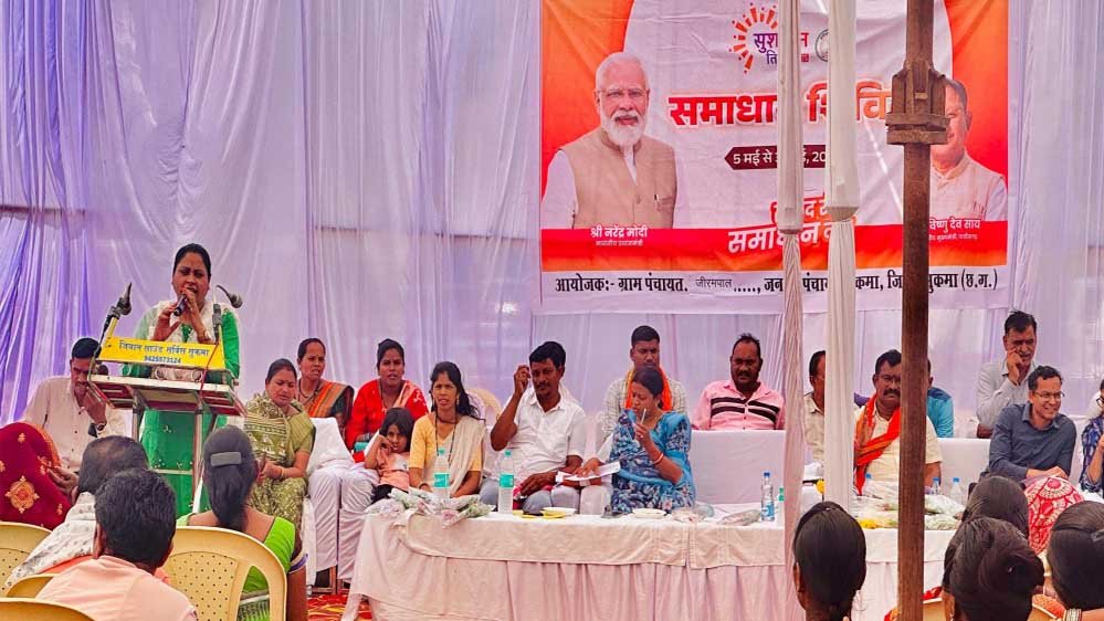 मुख्यमंत्री श्री विष्णु देव साय के नेतृत्व में छत्तीसगढ़ में सुशासन तिहार का आयोजन शासन की जनहितकारी योजनाओं को ग्रामीणों तक सीधे पहुँचाने की एक अभिनव पहल के रूप में किया जा रहा है। इसी कड़ी में सुशासन तिहार के तृतीय चरण के अंतर्गत सुकमा जिले के आदिवासी बहुल जीरमपाल कलस्टर ग्राम पंचायत में समाधान शिविर का आयोजन हुआ, जिसमें ग्रामीणों ने बढ़-चढ़कर भाग लिया।