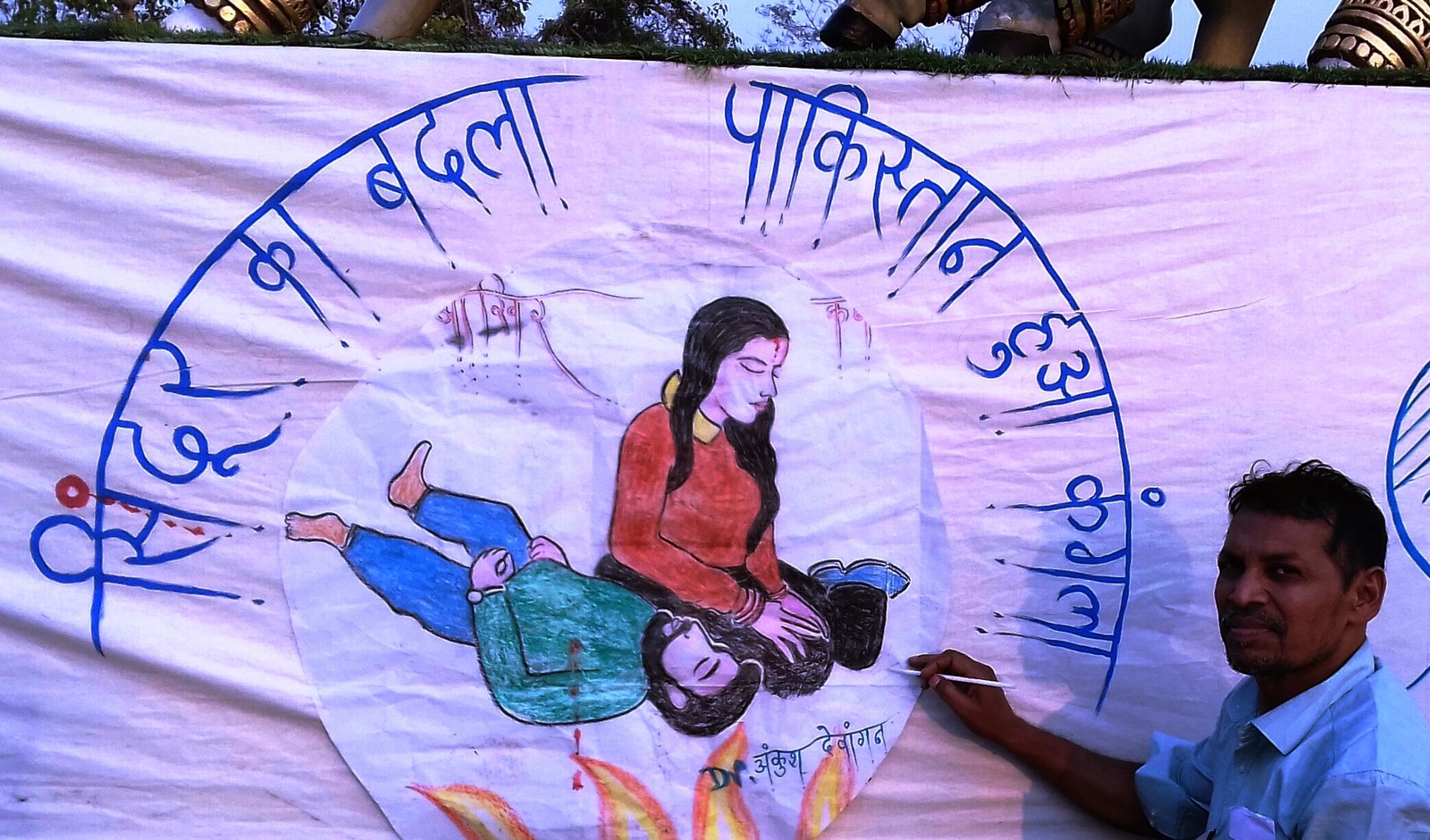 भिलाई | अंकुश देवांगन द्वारा भारतीय सेना के सम्मान में बनाई गई पेन्टिंग लोगों के आकर्षण का केंद्र बनी हुई है। इस पेन्टिंग में उन्होंने छः दिन पहले ही शादी हुए महिला के यकायक विधवा हो जाने के दृश्य का ह्रदय विदारक चित्रण किया है। सिर झुका कर सुख चुके आंसू से शून्य को निहारती नवयौवना की पेन्टिंग में कलाकार ने सिंदूर का बदला पाकिस्तान हुआ कंगला लिखा है। यह शब्द अब राष्ट्रीय स्तर पर सोशल मीडिया में भी जमकर वायरल हो रहा है। सिविक सेंटर कृष्ण अर्जुन रथ परिसर में बनाए गए इन चित्रों को देखने के लिए प्रतिदिन सैकड़ो लोग आ रहे हैं।