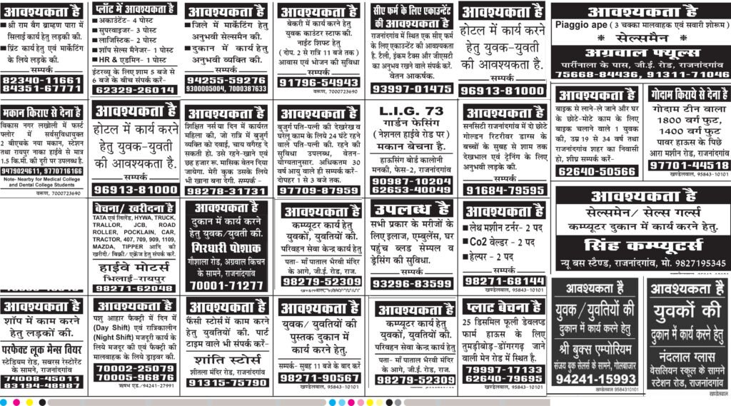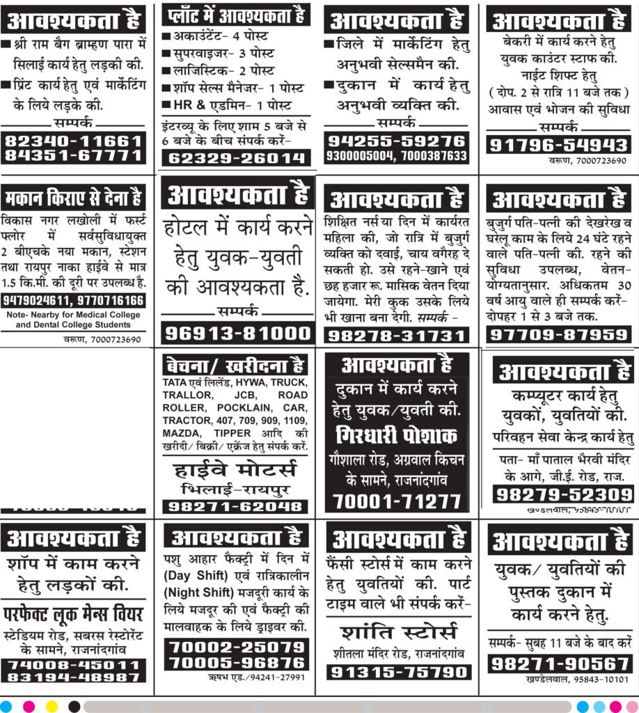 राजनांदगांव में युवाओं के लिए नौकरी के कई अवसर खुले हैं। विभिन्न प्राइवेट दुकानों और संस्थानों में सेल्स, कंप्यूटर ऑपरेटर, होटल स्टाफ और अन्य पदों पर भर्ती की जा रही है। इच्छुक अभ्यर्थी सीधे संपर्क कर सकते हैं। Job Job Job! राजनांदगांव में प्राइवेट दुकानों में निकली बंपर वैकेंसी…… युवाओं के लिए नौकरी के अवसर