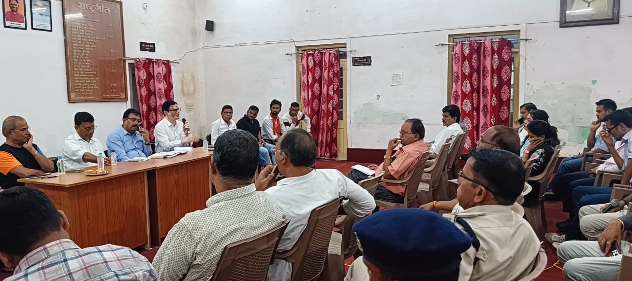 राजनांदगांव। शहर को व्यवस्थित करने, यातायात व्यवस्था सुदृढ़ करने एवं सुगम आवागमन के लिए जिलाधीश डाॅ. सर्वेश्वर नरेन्द्र भूरे के निर्देश पर आज नगर निगम सभागृह में प्रशासन एवं व्यापारियों की संयुक्त बैठक आयोजित की गई। बैठक में निगम आयुक्त अतुल विश्वकर्मा, अनुविभागीय अधिकारी खेमलाल वर्मा तथा सिटी थाना प्रभारी रोमेन्द्र सिंह, यातायात विभाग के शरद कुमार सहित चेम्बर आॅफ कामर्स के प्रदेश महामंत्री तरूण लहरवानी व प्रदेश उपाध्यक्ष आलोक बिंदल, चेम्बर आॅफ कार्मस के जिलाध्यक्ष कमलेश बैद के अलावा शहर के व्यापारिक क्षेत्र के पार्षद शैंकी बग्गा, राजेश जैन रानू, जैनम बैद, प्रमोद झंझाडे, पूर्व पार्षद शरद सिन्हा विशेष रूप से उपस्थित थे।