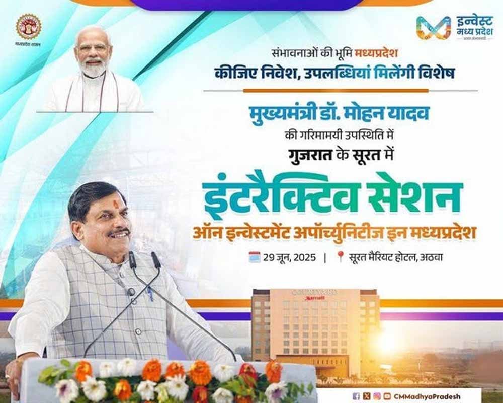 मुख्यमंत्री डॉ. मोहन यादव आज गुजरात प्रांत के सूरत स्थित होटल मैरियट में आयोजित "मध्यप्रदेश में निवेश के अवसरों पर इंटरएक्टिव सेशन" में शामिल होंगे। यह आयोजन “उद्योग एवं रोजगार वर्ष 2025” अभियान की श्रृंखला में बेंगलुरु के बाद दूसरा बड़ा संवाद होगा। इस अभियान का उद्देश्य क्षेत्रीय स्तर पर औद्योगिक समूहों से जुड़ाव बढ़ाना, रोजगार के अवसर सृजित करना और निवेश को सुगम बनाना।