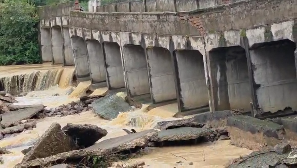 सूरजपुर। छत्तीसगढ़ में अब मानसून पूरी तरह से एक्टिव हो चुका है. लगातार हो रही बारिश से सूरजपुर में गोबरी नदी पर बना पुल पूरी तरह जर्जर हो चुका है. बारिश के चलते इसका बाउंड्री वाल भी टूटकर गिर गया. पुल में दरारें और धंसाव साफ नजर आ रहे हैं. इसके गिरने की आशंका बढ़ गई है. हालात इतने खराब हैं कि ग्रामीण डर के साए में आवाजाही कर रहे हैं.